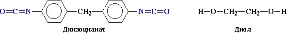В самом начале процесса получения полимерных уретанов реагируют два простейших компонента цепи: